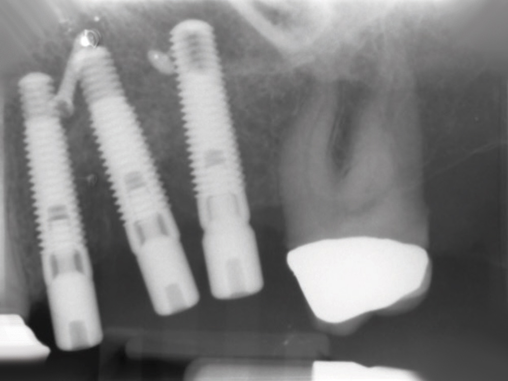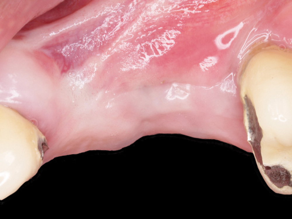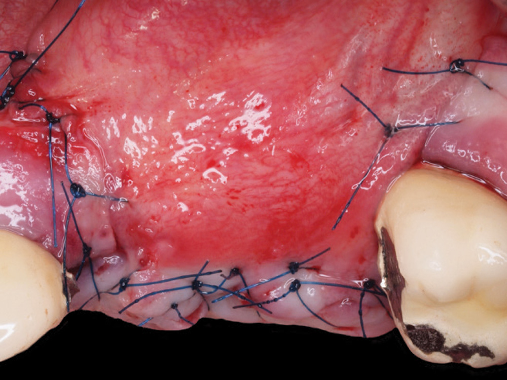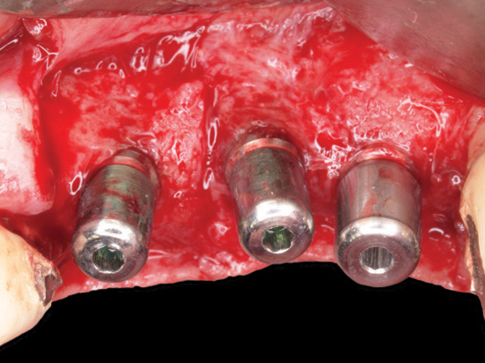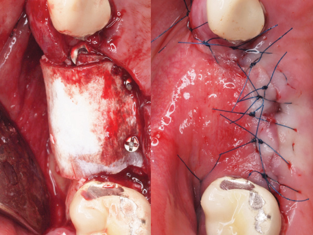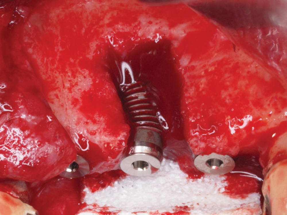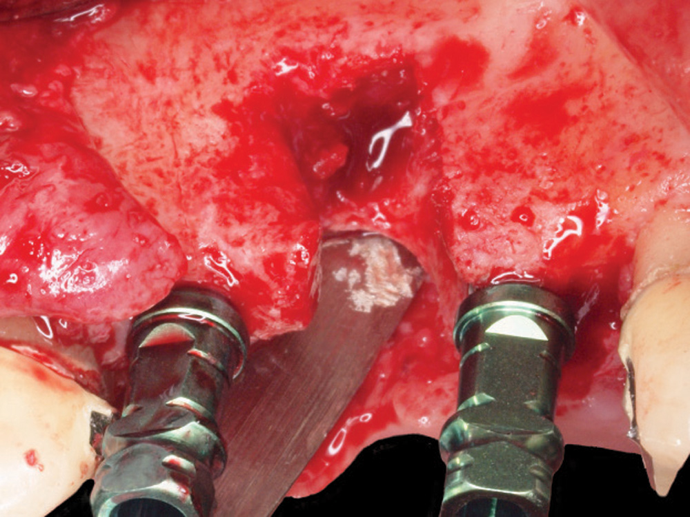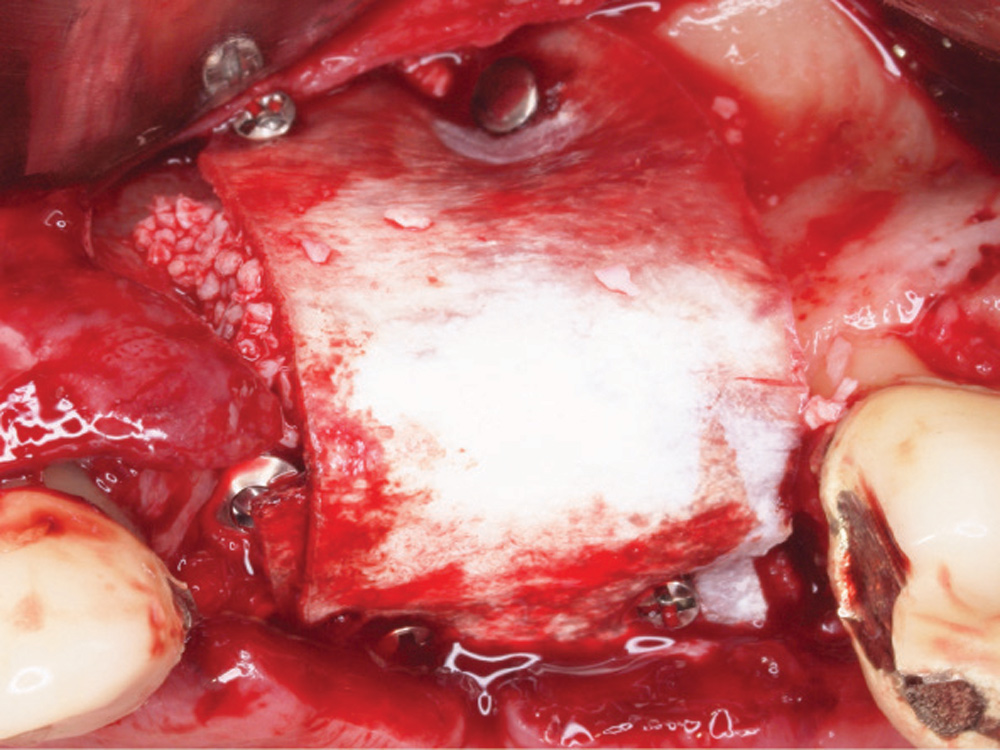 Zavedení kortikální laminy OsteoBiol Cortical Lamina, aby bylo zamezeno kolapsu vertikálního defektu.